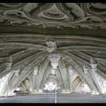 Campagne photographique à l’occasion de la rénovation de la Sainte-Chapelle du Château des ducs de Savoie. Peintures et sculptures de la voûte / vitraux / lustre / mobilier bois / escalier.