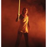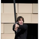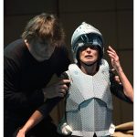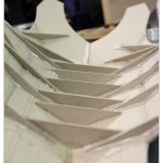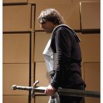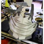 Travail en deux temps pour les accessoires armures et épées : évocation acier / carton.