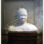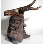 « En quoi faisons-nous compagnie avec le Menhir dans les landes ? » Création de deux masques pour le danseur bionique Sally Sly inspirés de masques ethniques africains.