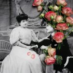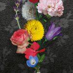 2e déclinaison autour des fleurs et de la notion de voix vivante et répertoire musical. Ici, les anciennes photographies et/ou cartes postales représentent le répertoire.